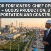 Work For Foreigners: Chief Operating Officer – Goods Production, Utilities, Transportation and Construction